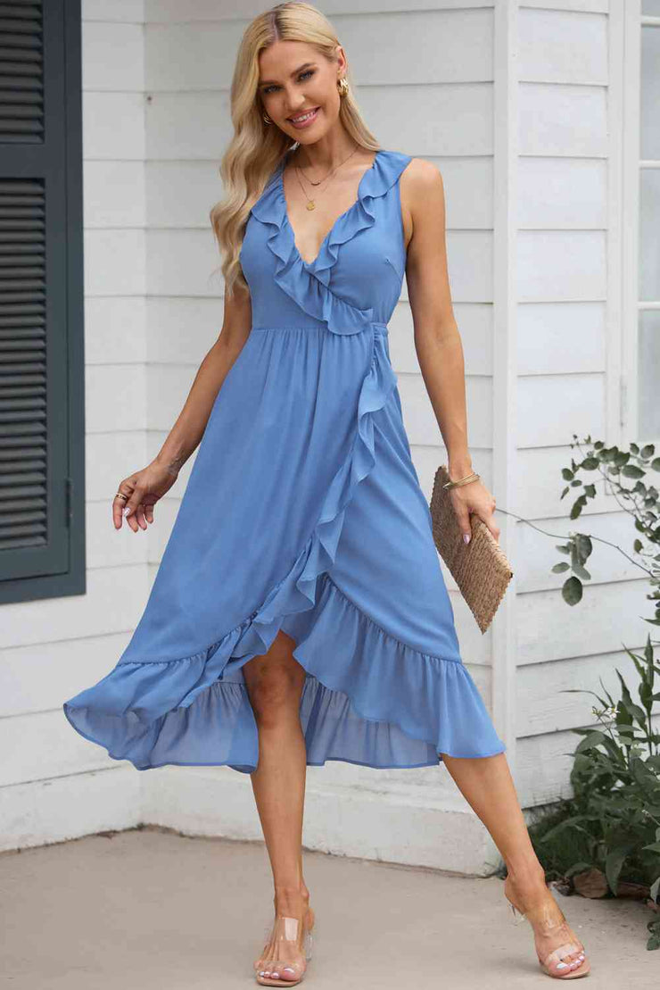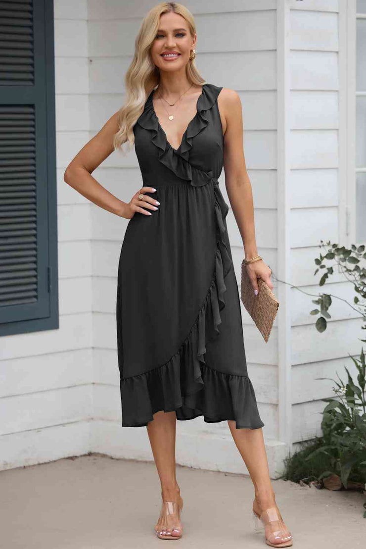 BEAUTIFUL I AM Ruffled Sleeveless Midi Dress