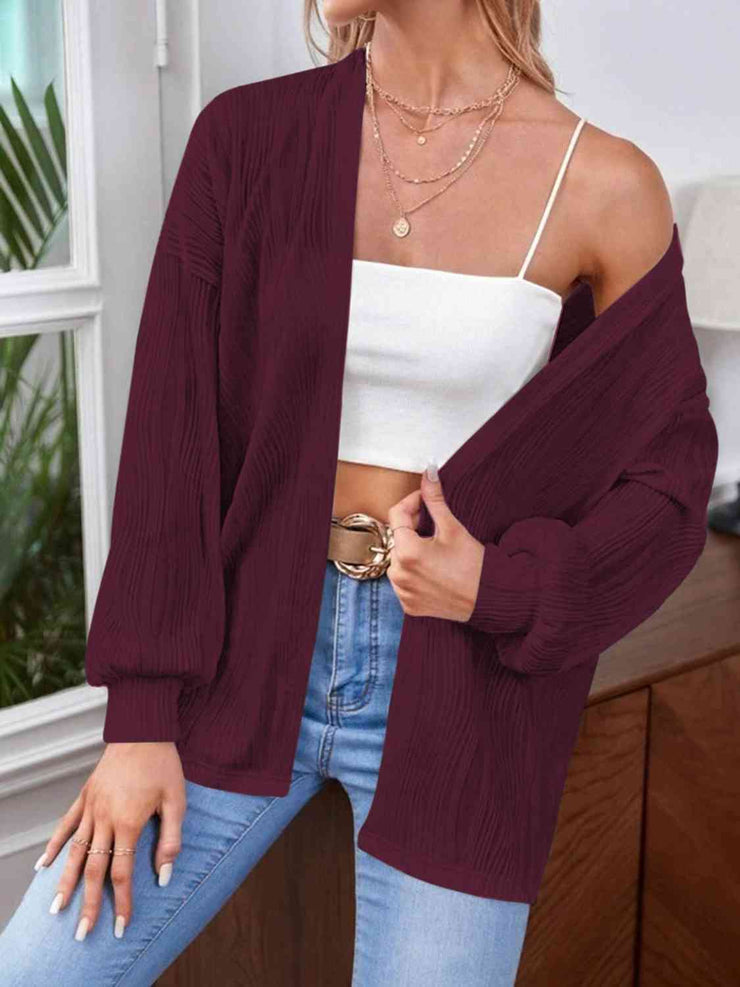 BEAUTIFUL I AM Open Front Lantern Sleeve Cardigan