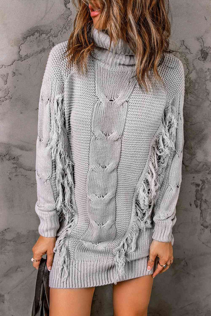BEAUTIFUL I AM Turtleneck Fringe Detail Sweater Dress