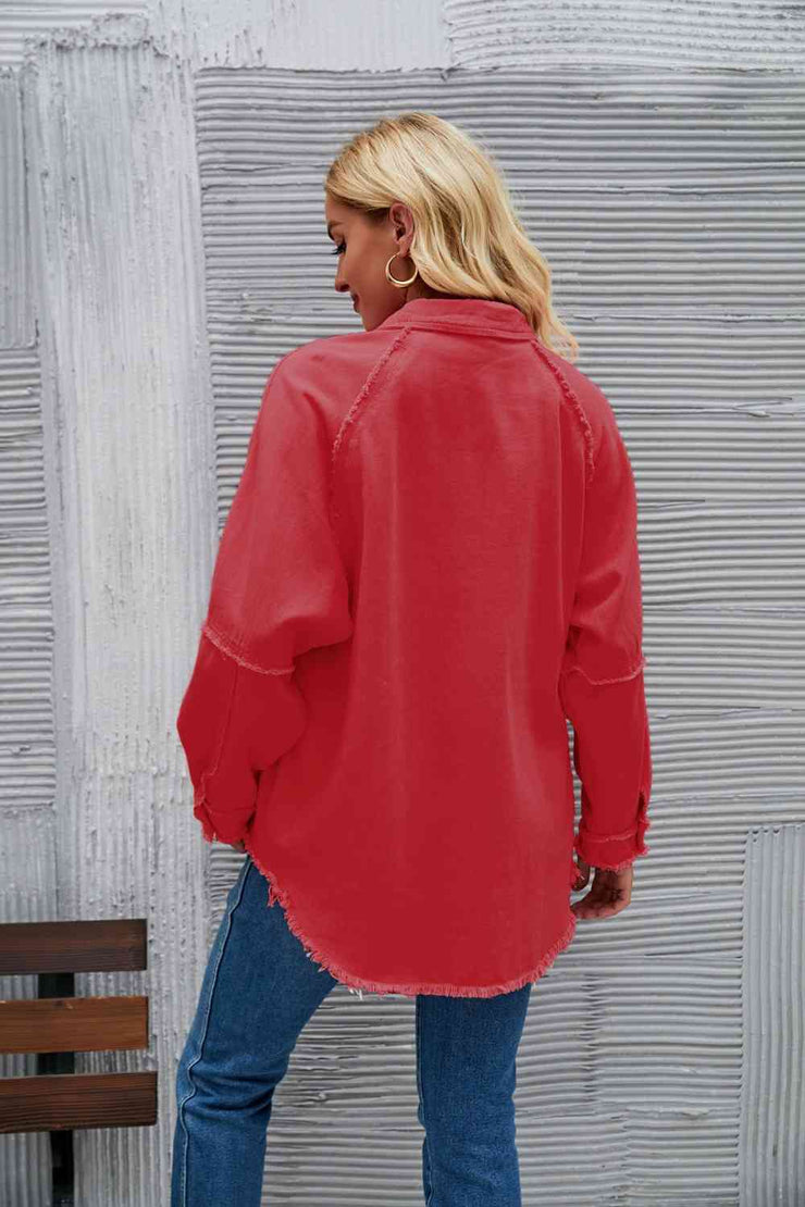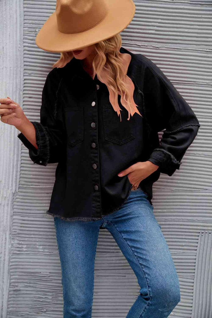 BEAUTIFUL I AM Raw Hem Collared Denim Jacket