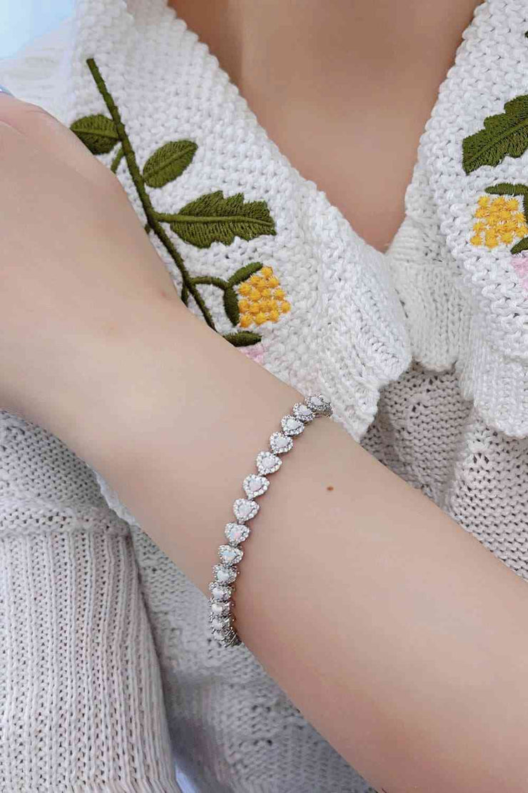 BEAUTIFUL I AM 925 Sterling Silver Jewelry Opal Heart Bracelet