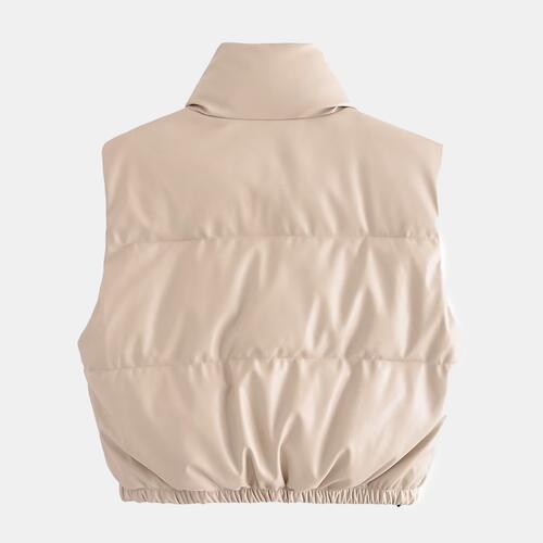 BEAUTIFUL I AM Zip-Up Drawstring Puffer Vest Jacket