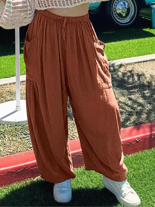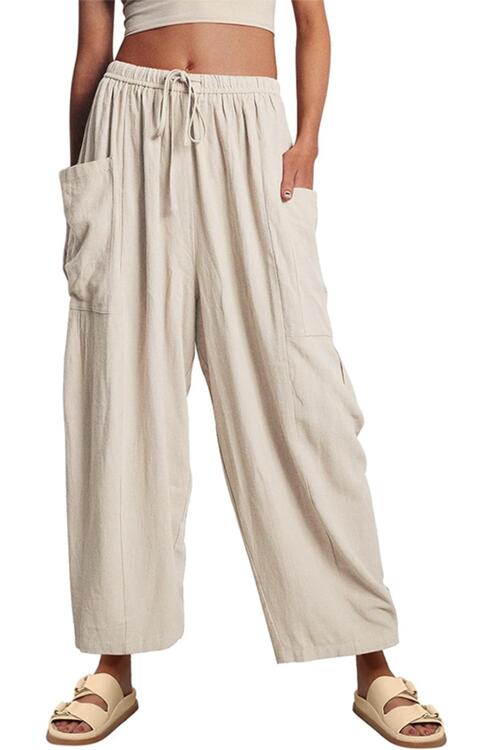 BEAUTIFUL I AM Drawstring Pocketed Wide Leg Pants