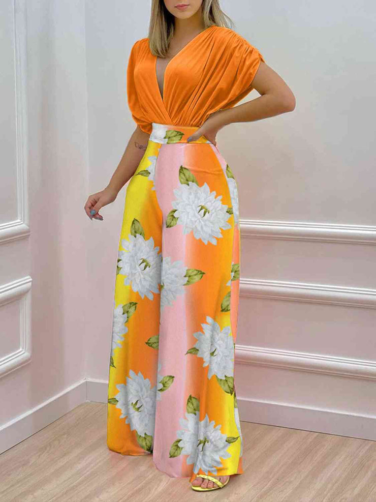 BEAUTIFUL I AM Printed Surplice Top and Wide Leg Pants Set