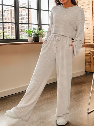 BEAUTIFUL I AM Ribbed Round Neck Top and Drawstring Pants Set