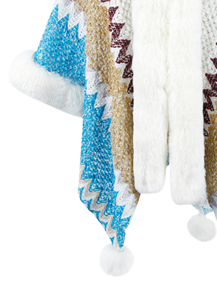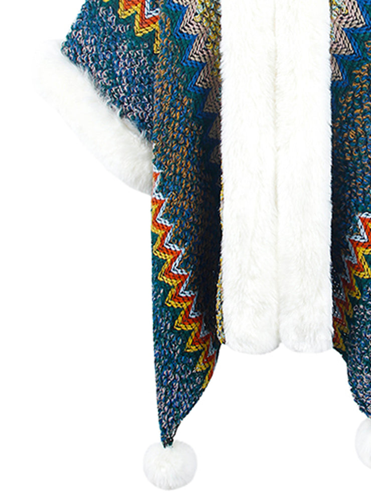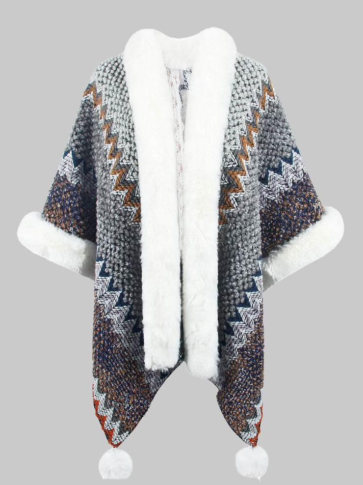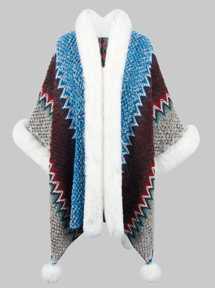 BEAUTIFUL I AM Color Block Open Front Poncho