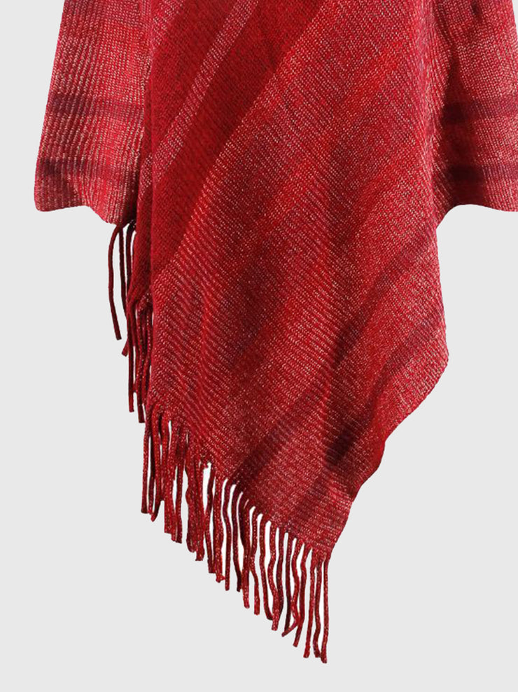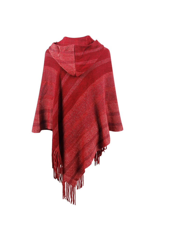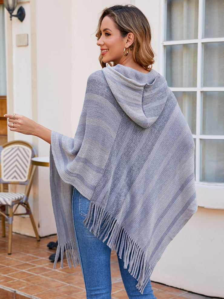 BEAUTIFUL I AM Striped Fringe Hem Hooded Poncho