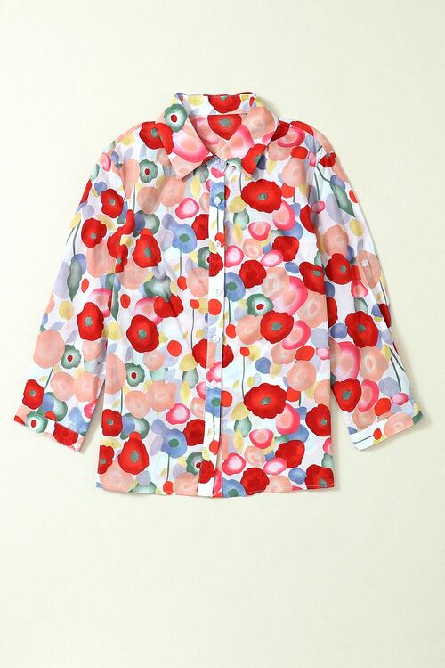 BEAUTIFUL I AM Floral Collared Neck Button Down Shirt