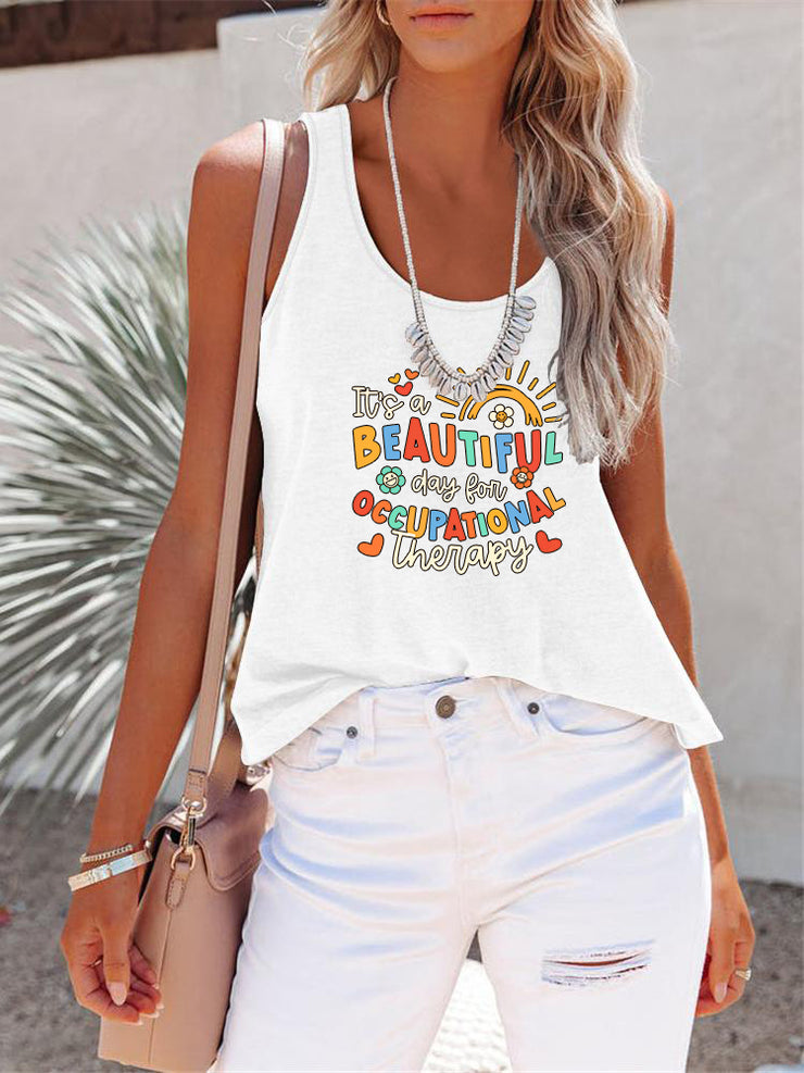 BEAUTIFUL I AM Full Size Letter Graphic Scoop Neck Tank Shirt