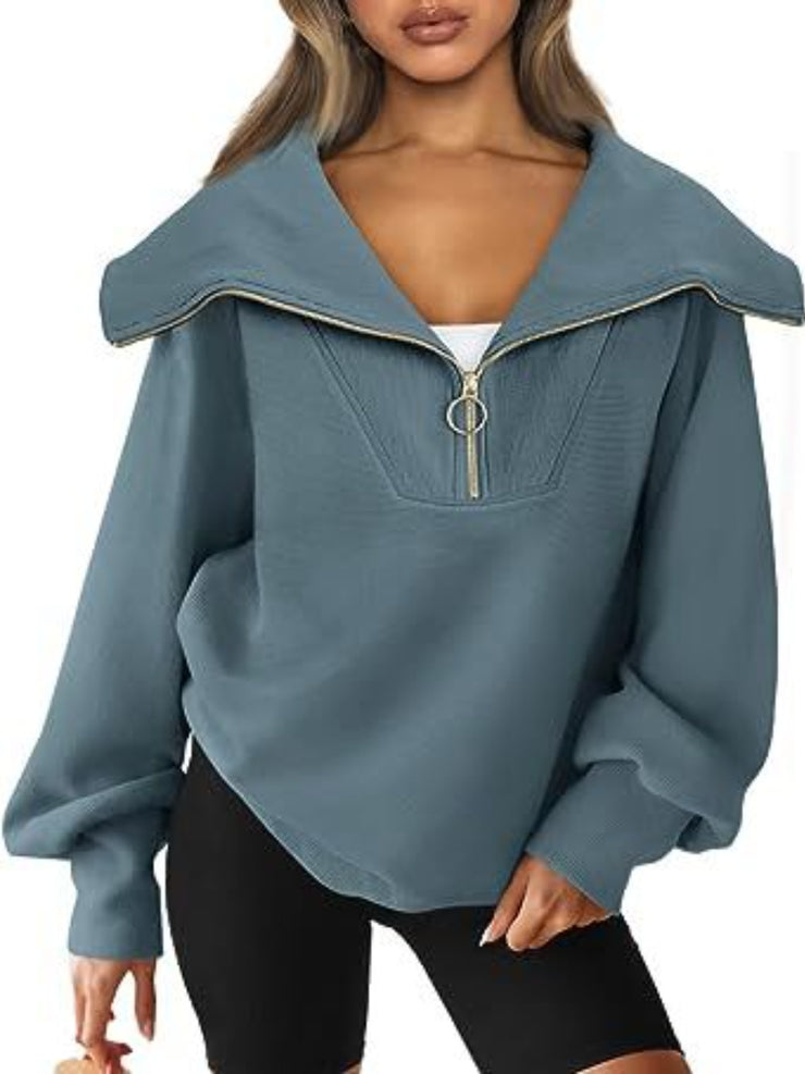 BEAUTIFUL I AM Half-Zip Lantern Sleeve Top Shirt