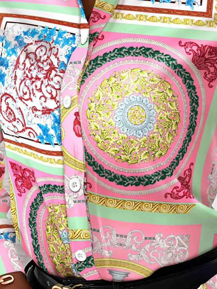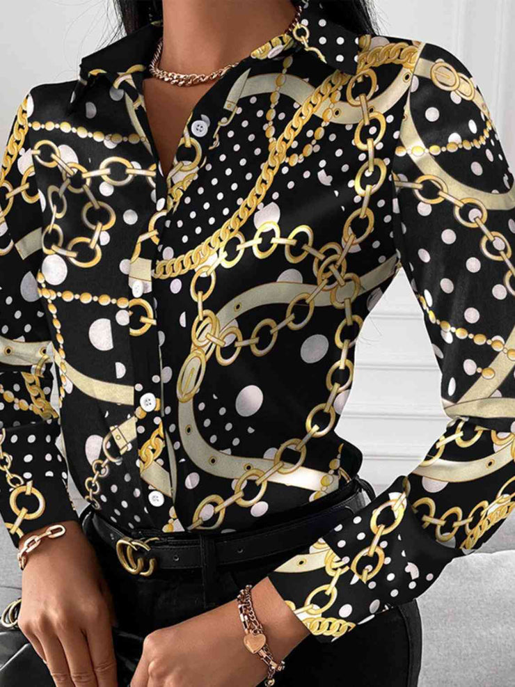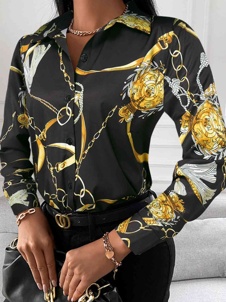BEAUTIFUL I AM Printed Collared Neck Long Sleeve Shirt