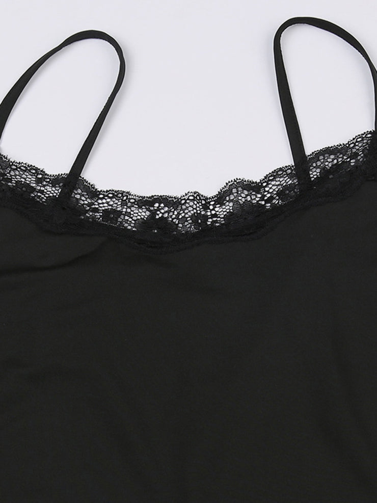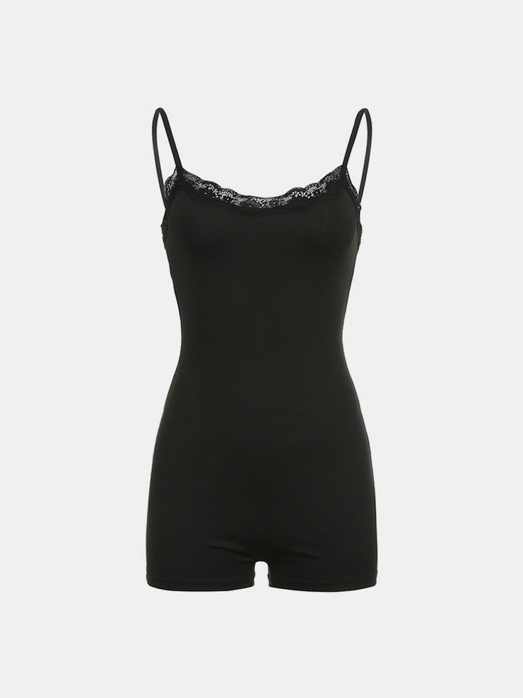 BEAUTIFUL I AM Lace Detail Scoop Neck Spaghetti Strap Shorts Romper