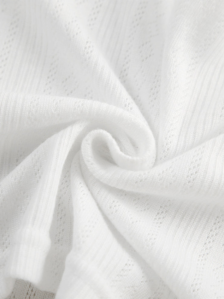 Features: Openwork Number of pieces: Two-piece Stretch: Moderate stretch Material composition: 85% polyester, 15% rayon Care instructions: Machine wash cold. Tumble dry low. Imported Size US Top Length Bust Bottom Length Waist HIP Sleeve Length S 4 12.2 32.7 10.6...