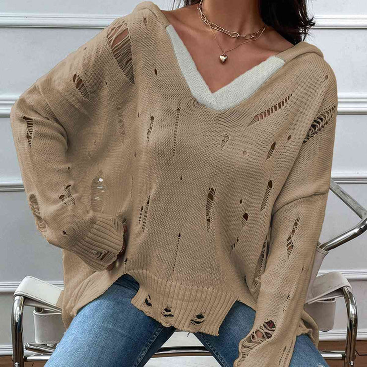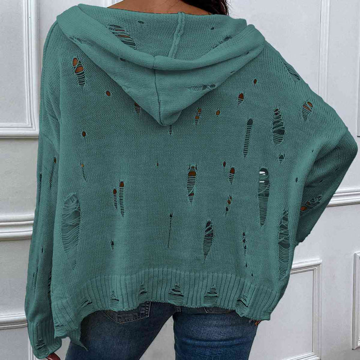 BEAUTIFUL I AM Distressed Slit Drop Shoulder Hooded Sweater