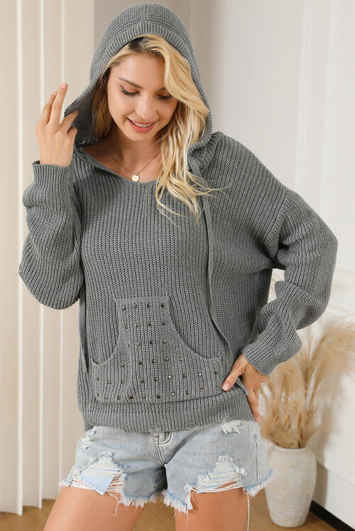 BEAUTIFUL I AM Rivet Drawstring Hooded Long Sleeve Sweater