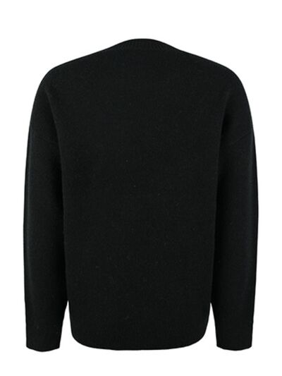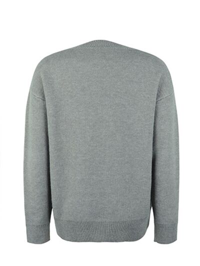 BEAUTIFUL I AM Smile Pattern Round Neck Dropped Shoulder Sweater