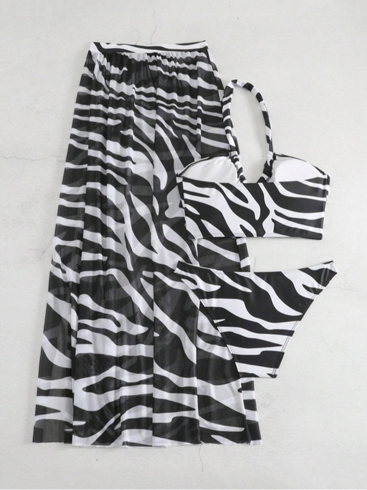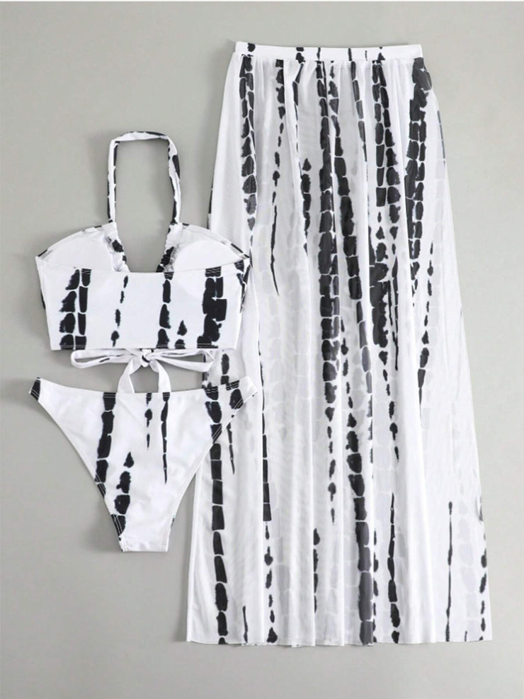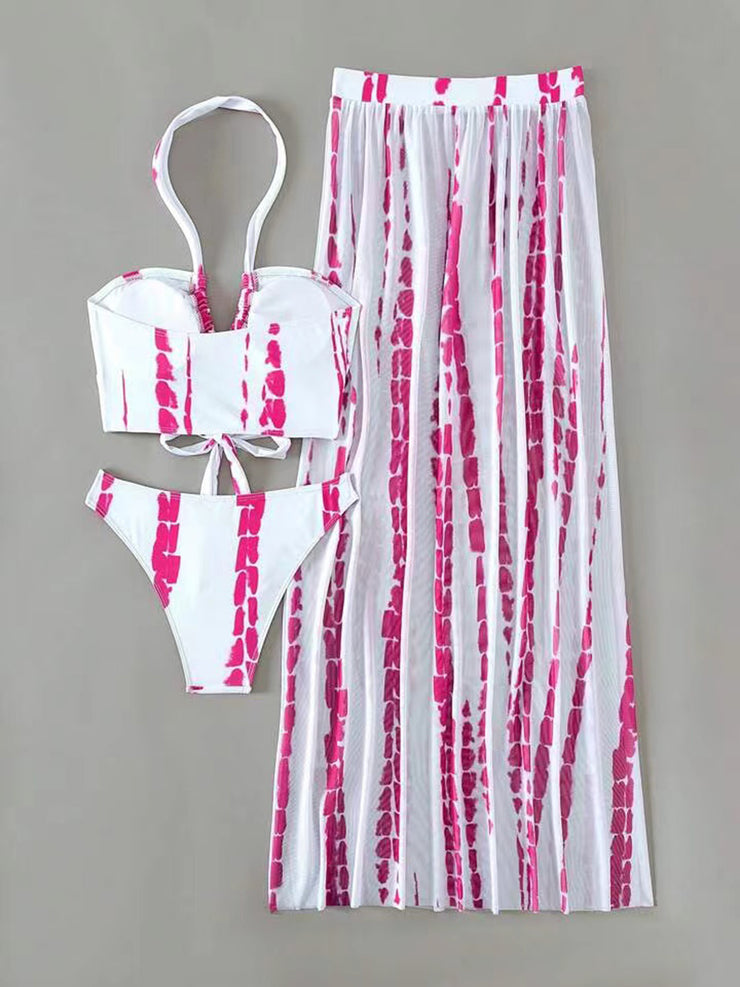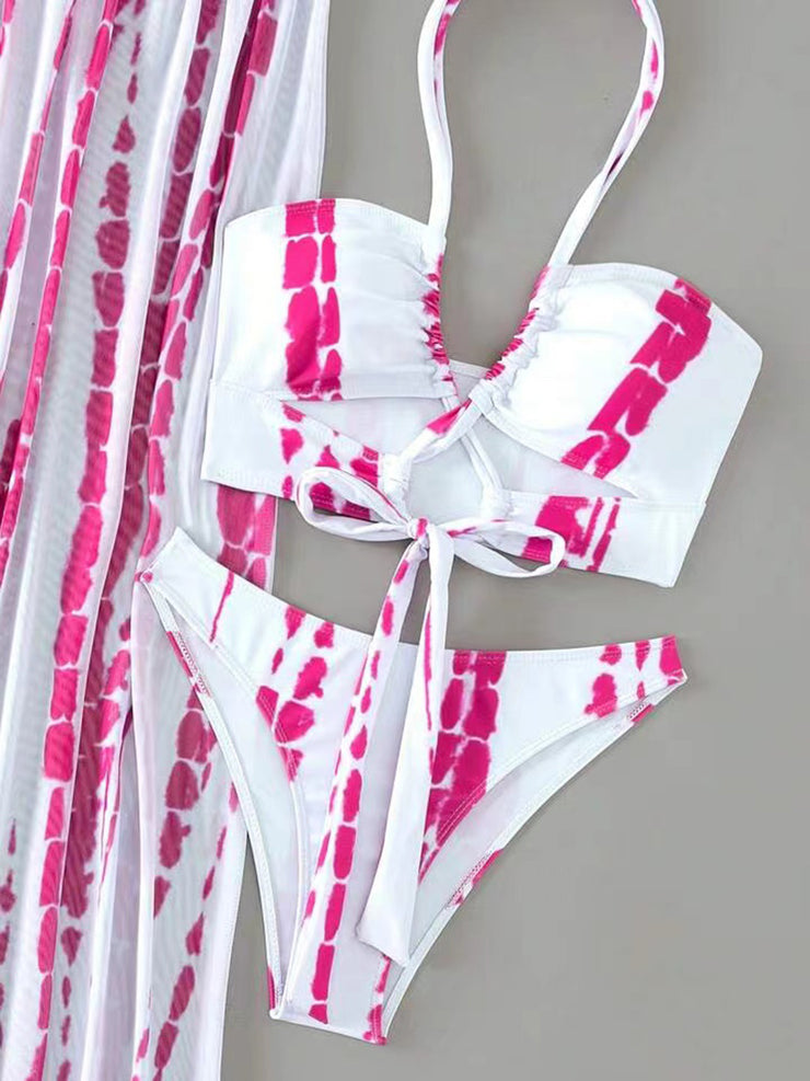 BEAUTIFUL I AM Printed Halter Neck Three-Piece Swim Set