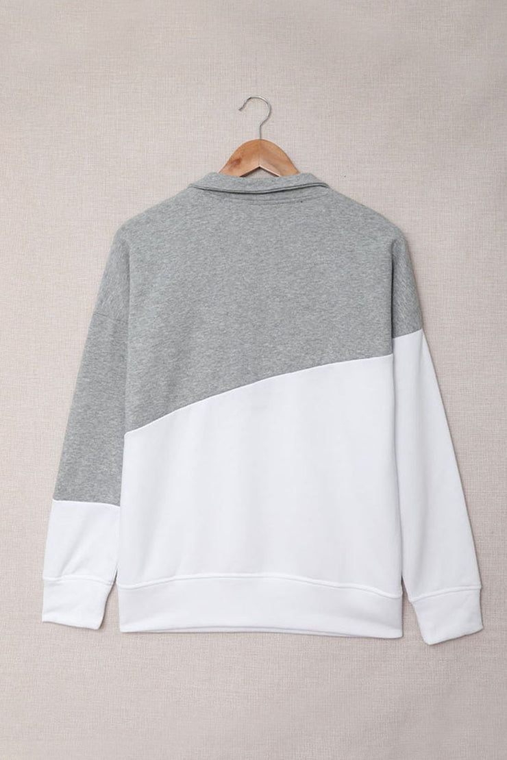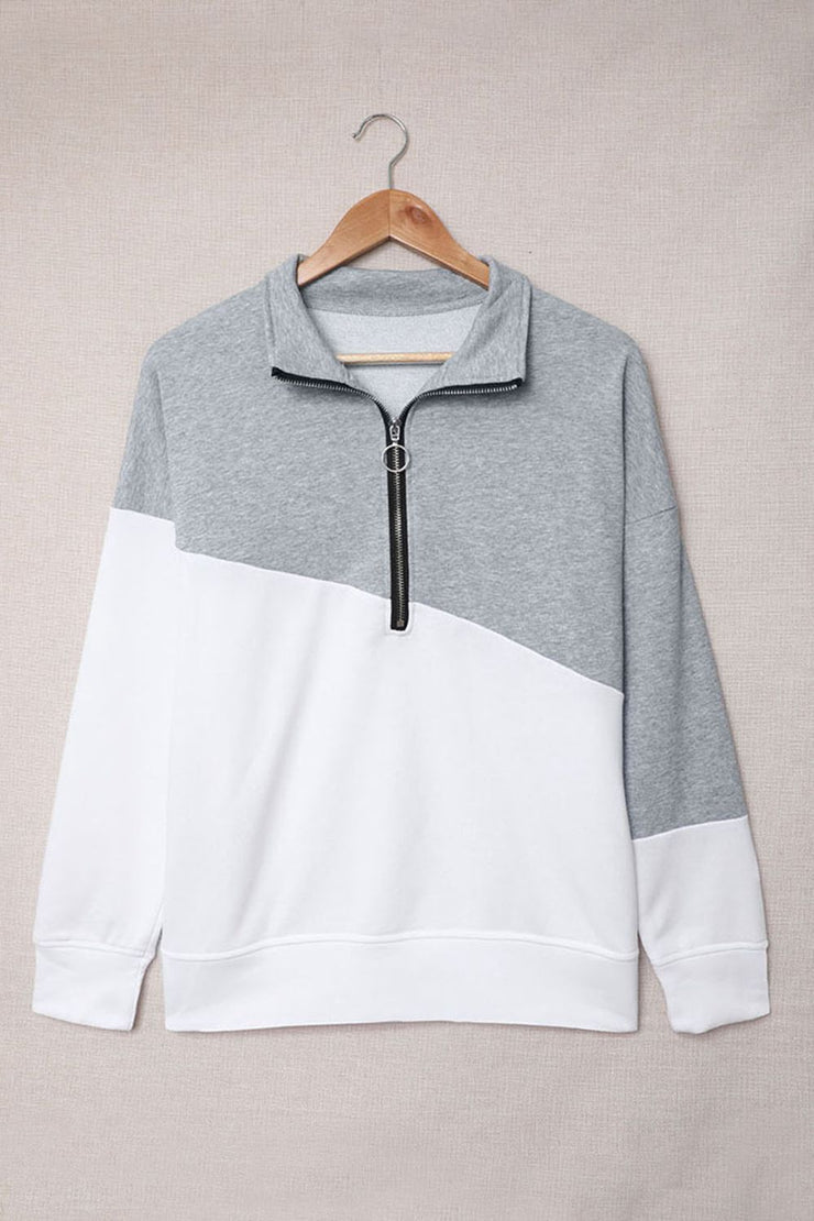 BEAUTIFUL I AM Contrast Zip-Up Collared Neck Dropped Shoulder Blouse Shirt