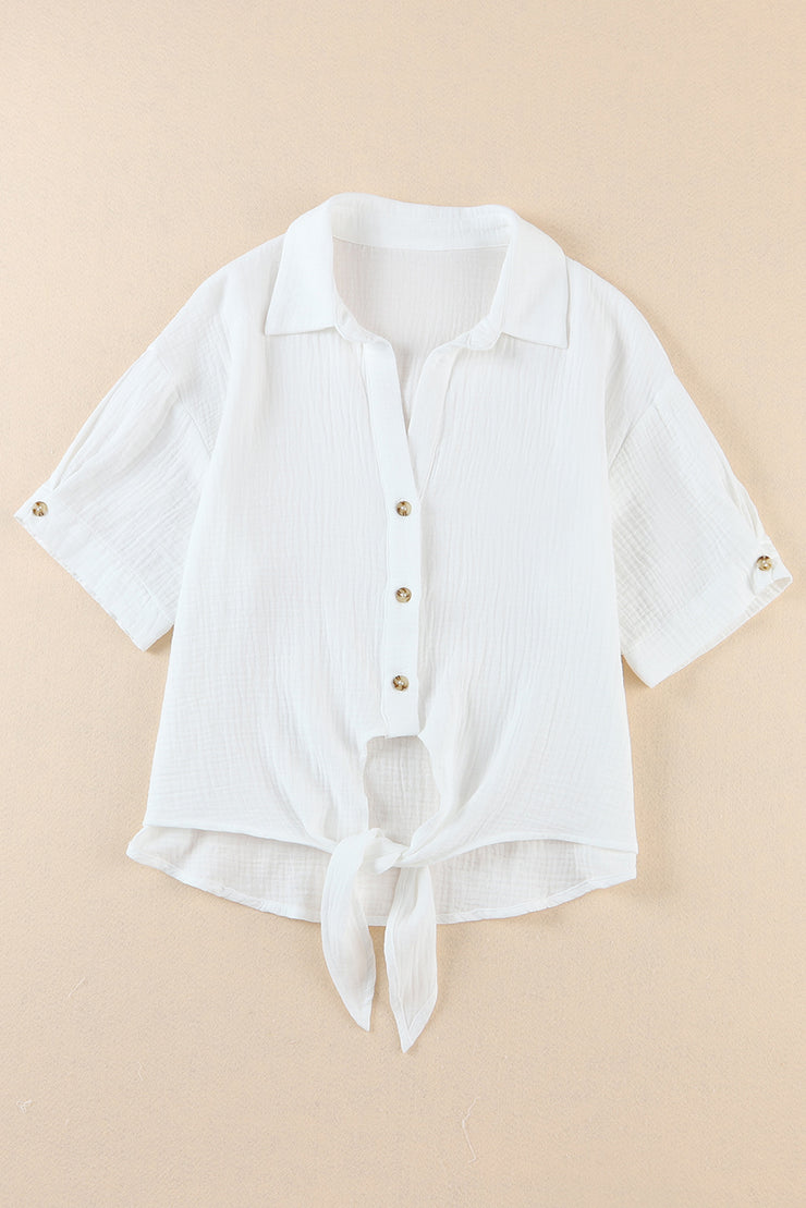 BEAUTIFUL I AM Tie Hem Half Sleeve Shirt