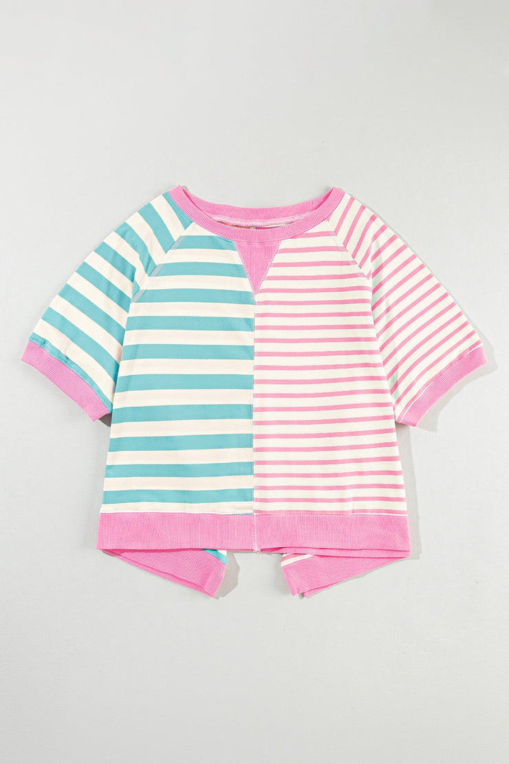 BEAUTIFUL I AM Contrast Stripes Round Neck Half Sleeve T-Shirt