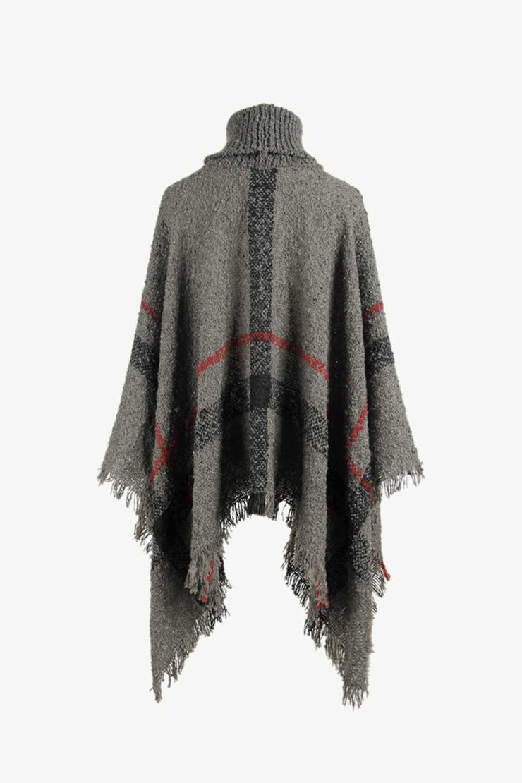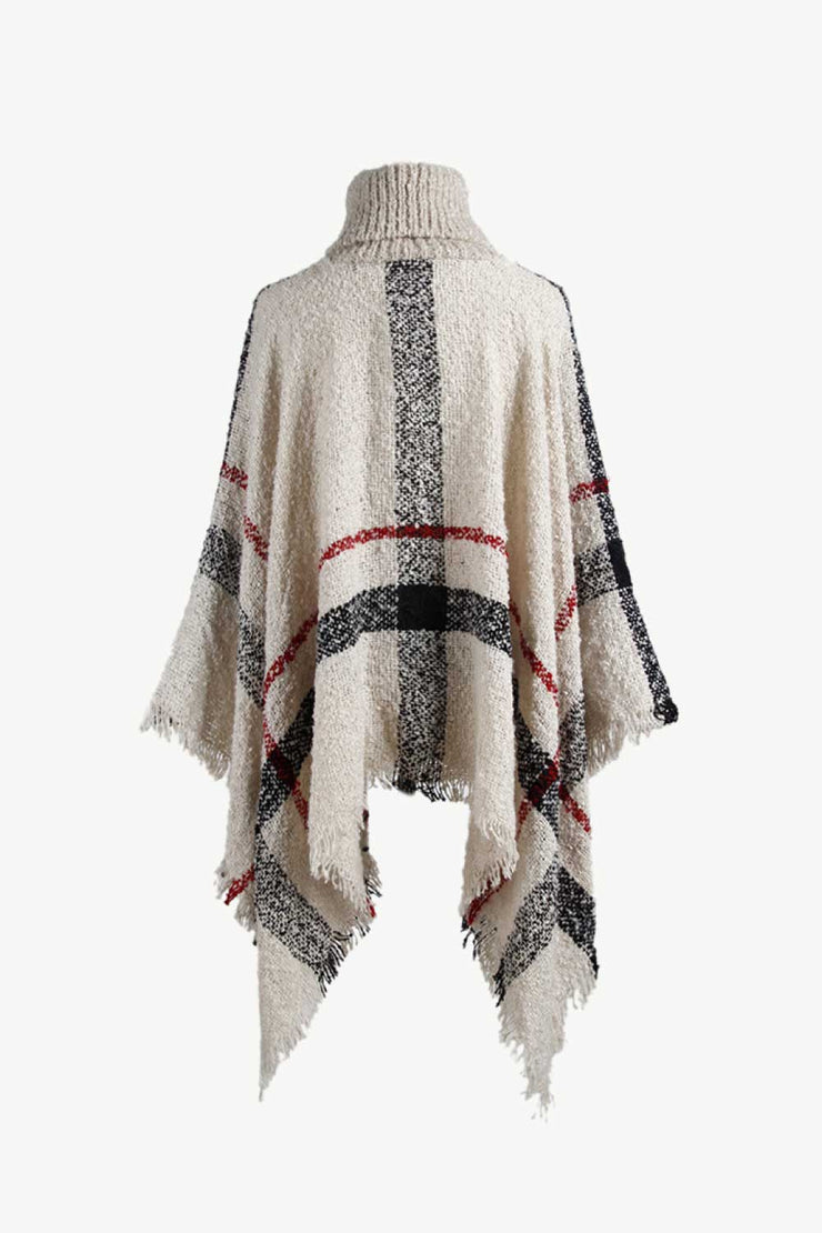 BEAUTIFUL I AM Plaid Turtleneck Raw Hem Poncho