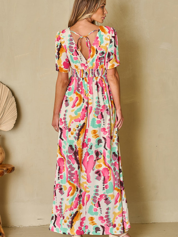 BEAUTIFUL I AM Slit Printed Surplice Short Sleeve Maxi Dress