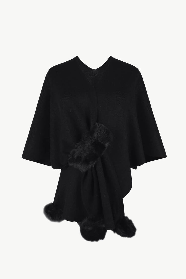BEAUTIFUL I AM Surplice Neck Pom-Pom Trim Poncho