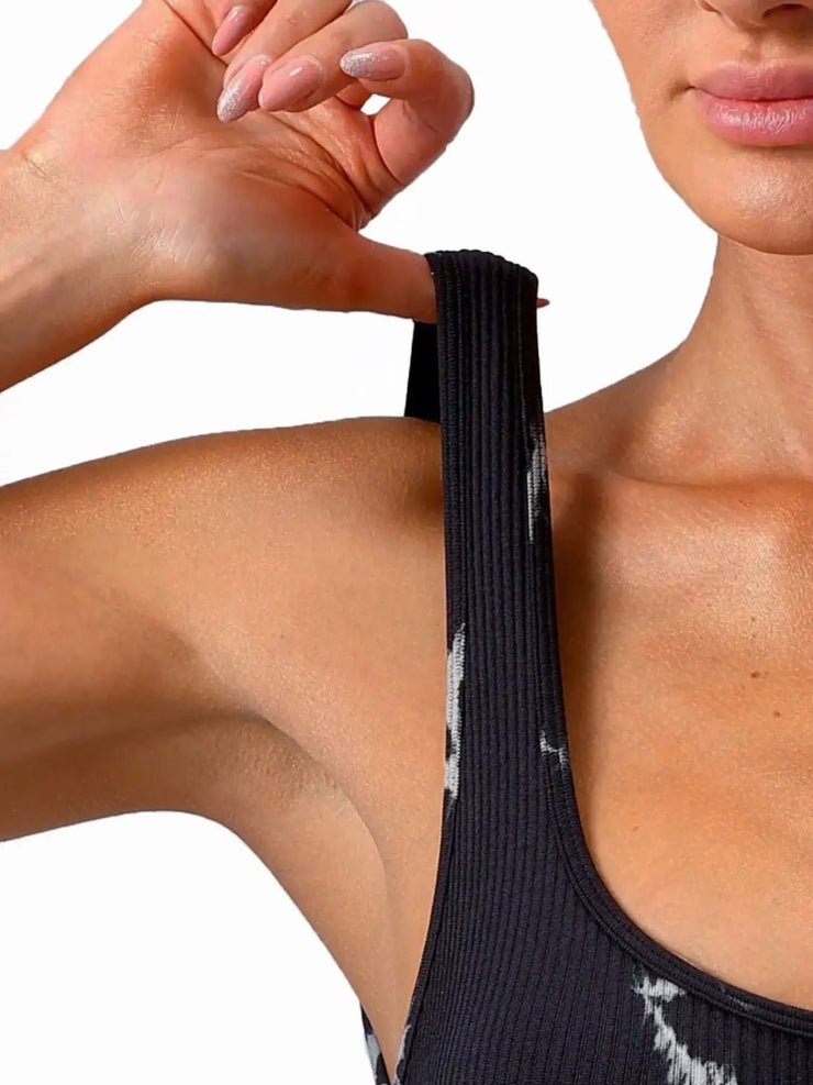 BEAUTIFUL I AM Tie-Dye Scoop Neck Wide Strap Active Wear Bodysuit