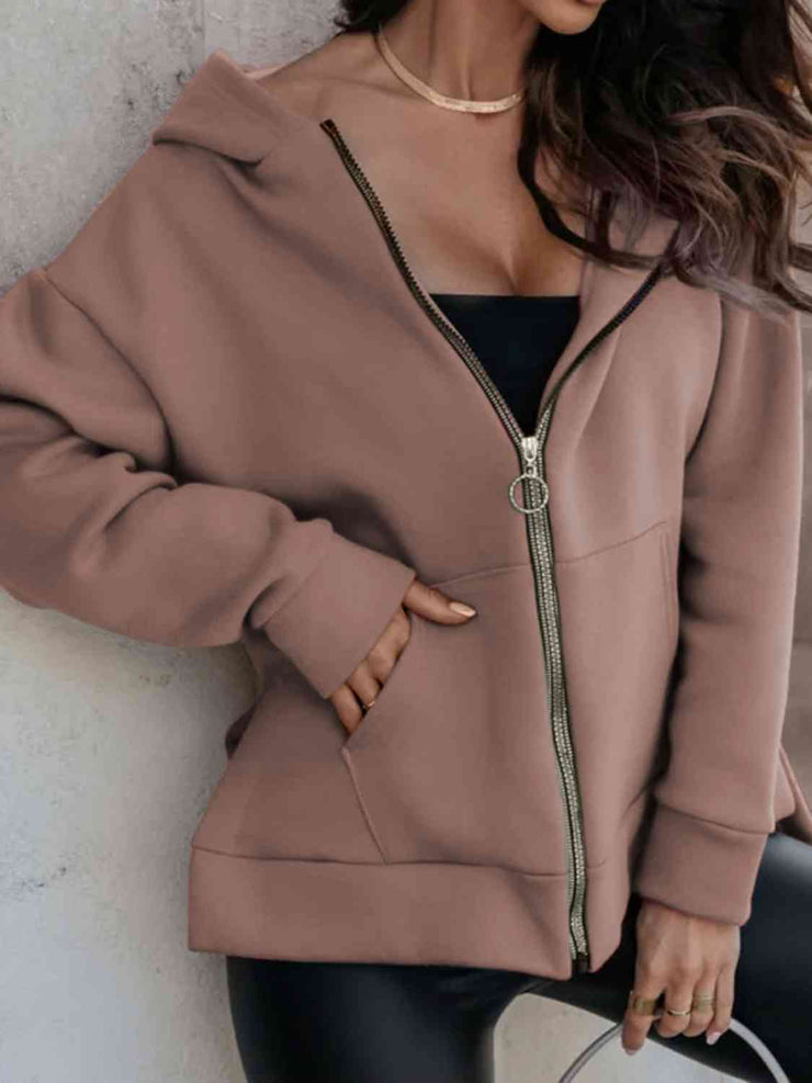 BEAUTIFUL I AM Zip-Up Slit Hoodie with Pockets